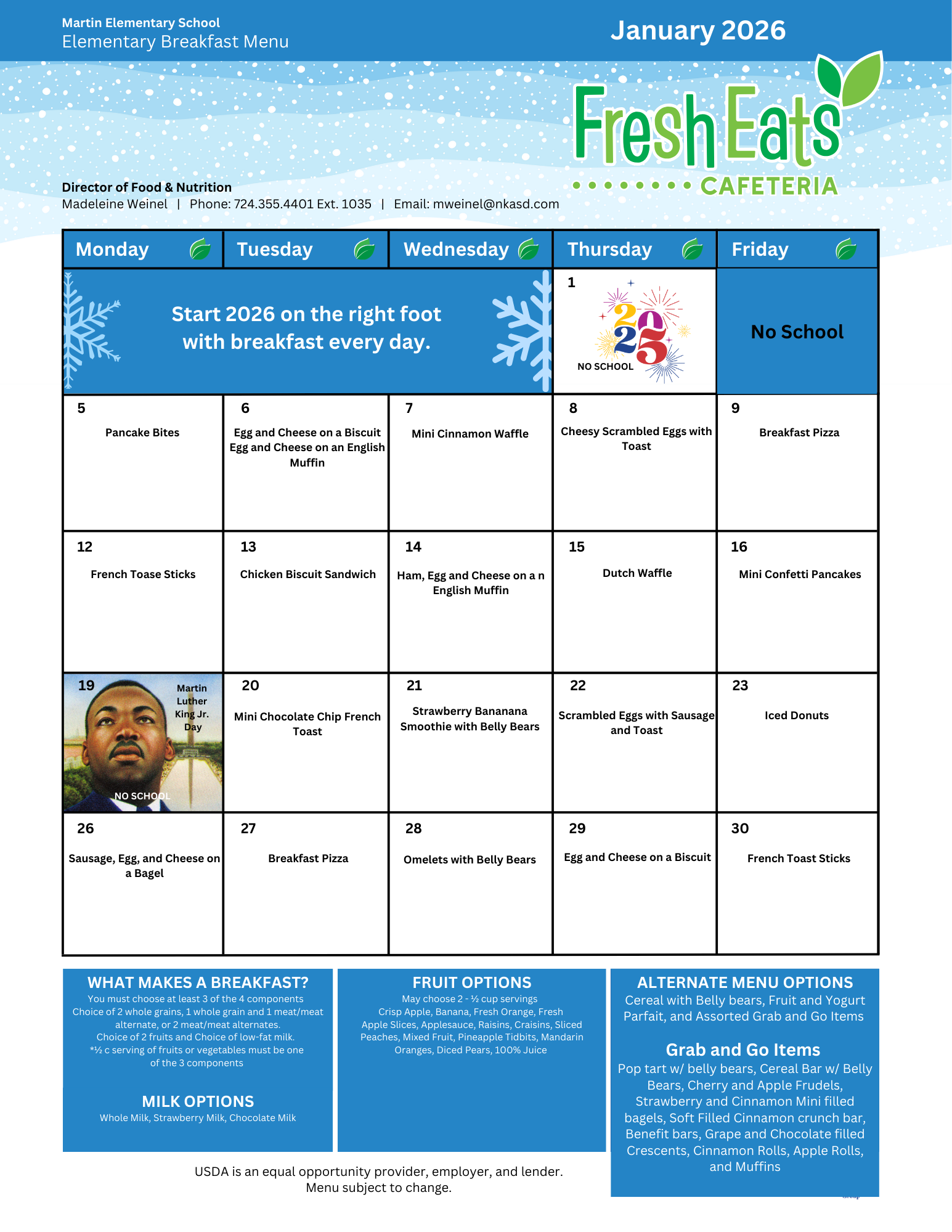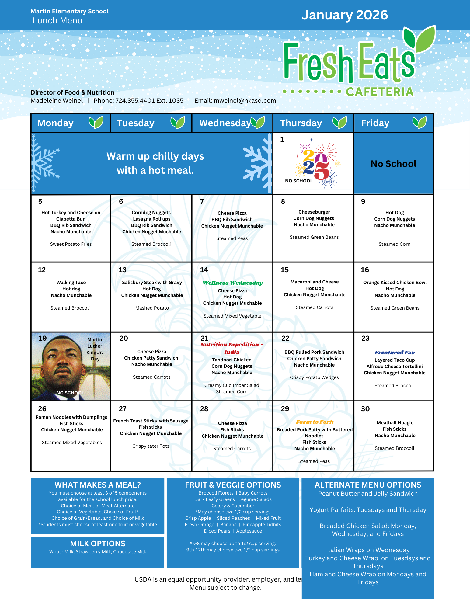 Martin Elementary Cafeteria Menu